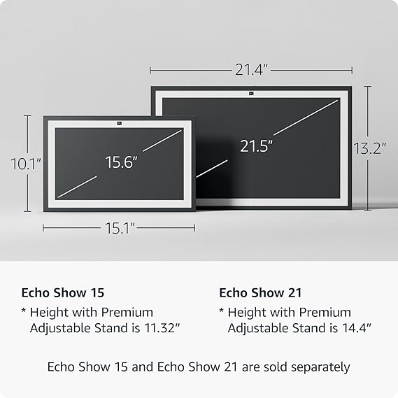 - MEET THE ALL-NEW ECHO SHOW 15 – A stunning 15.6″ Full-HD (1080p) smart display that’s perfect for your kitchen and ready to show you more. Use customizable widgets to keep your day on track, watch your favorite shows with Fire TV and powerful vibrant sound, and enjoy natural video calling, with 3.3x zoom and wide field of view.