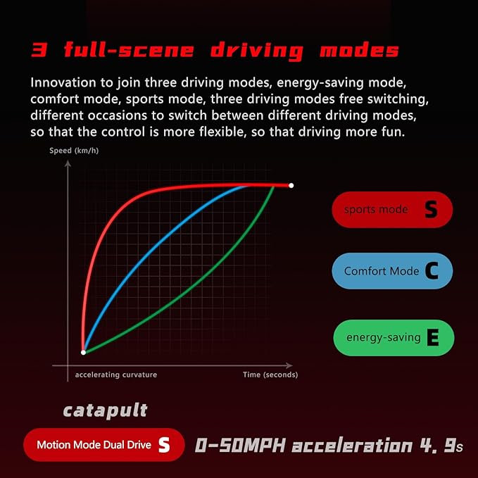 • 【Versatile Riding Modes】Experience the perfect blend of speed and versatility with our high-performance electric scooter! Choose from 3 dynamic modes to match your ride:Eco Mode (35 km/h): Ideal for safe, energy-efficient commuting. Sport Mode (65 km/h): Enjoy a thrilling boost for faster urban travel.Turbo Mode (85 km/h): Max speed for adrenaline-pumping adventures!