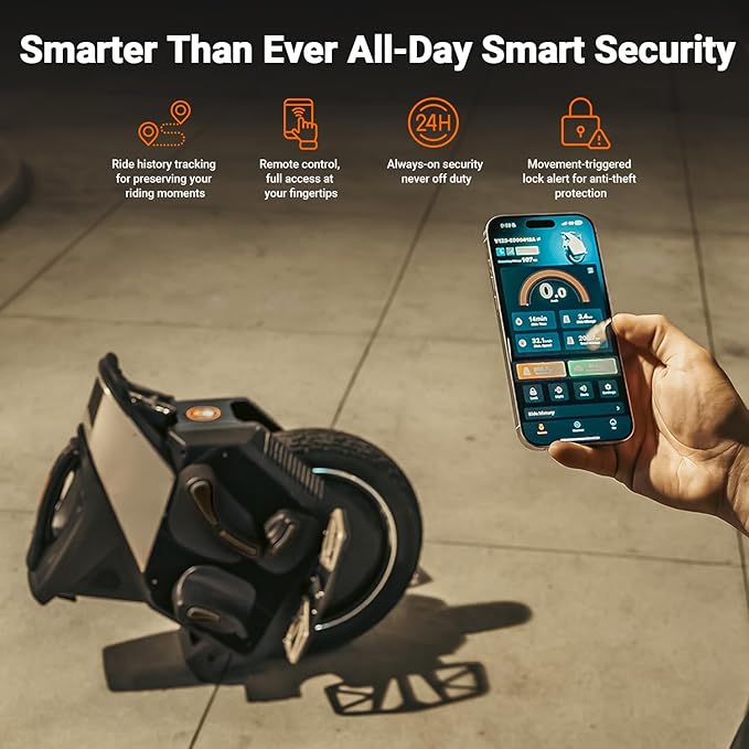 • Smart Security Suite with Real-Time Monitoring: Remotely lock your wheel and track routes via the app. Battery guard triggers low-power alerts, while IP67-rated battery/controller + IPX6 waterproofing withstand extreme conditions. Security module works even when powered off.