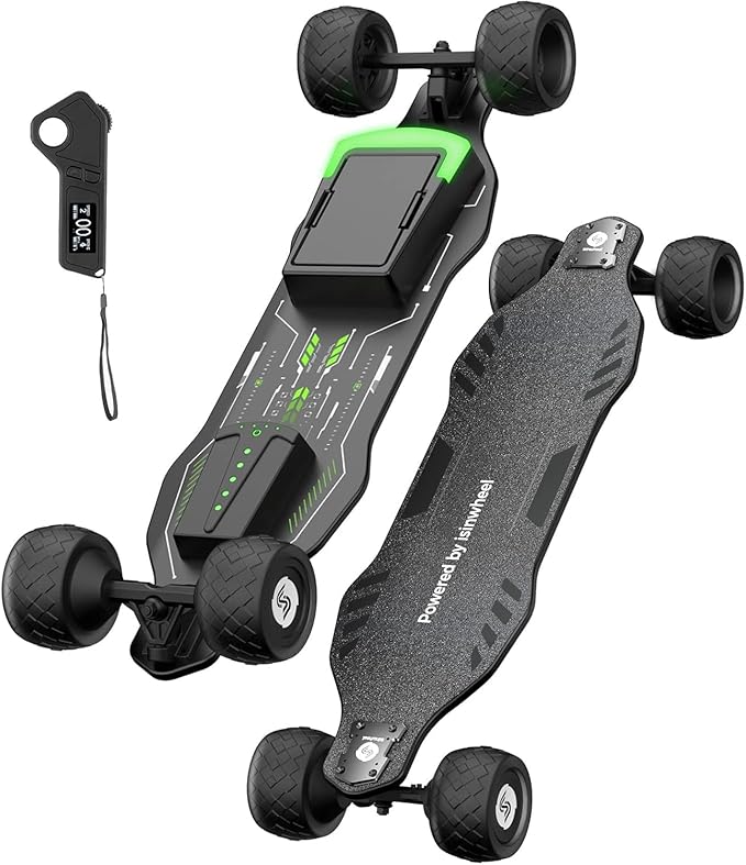 isinwheel Off Road Electric Skateboard with Remote, 3000W/1200W Brushless Motor, 32/30 Mph Top Speed & 28/12 Miles Range