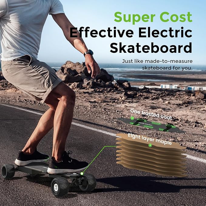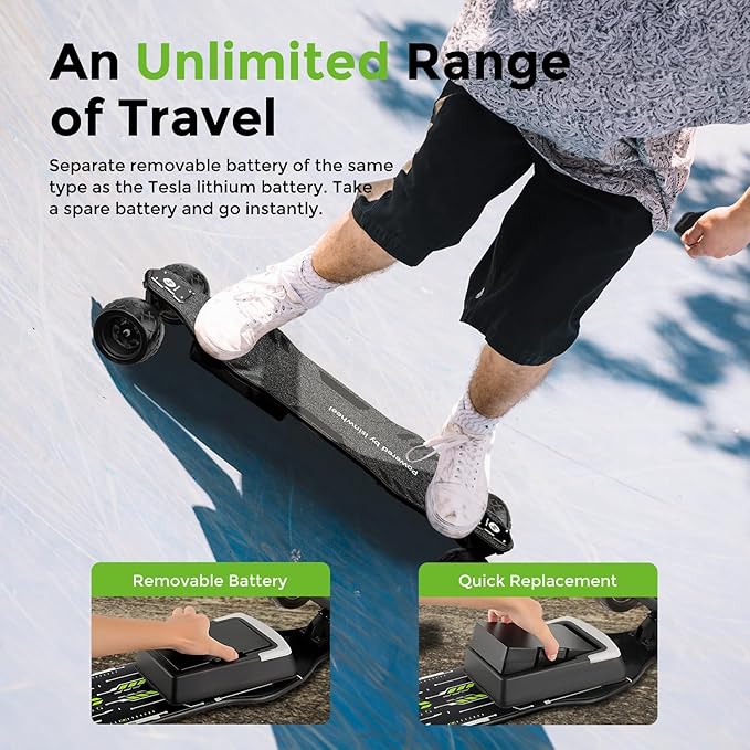 • More Power- Experience unparalleled performance with it’s dual-wheel brushless motors, delivering maximum speeds of 28-30mph and a peak power of 600W. Whether you’re tackling uphill climbs or cruising on sandy roads, this motor ensures a smooth and powerful ride. With years of dedicated research, isinwheel is committed to providing the ultimate electric skateboard experience. Your trust fuels our innovation
