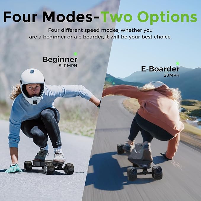 • 4 Modes & Smooth Braking – The ESC-sensitive control system provides precise speed adjustments and smooth braking for a safer ride. Easily manage all speeds and braking via the intuitive remote control, making it perfect for riders of all levels. Safety Tip: Always wear a helmet, regardless of speed. Your safety is our top concern