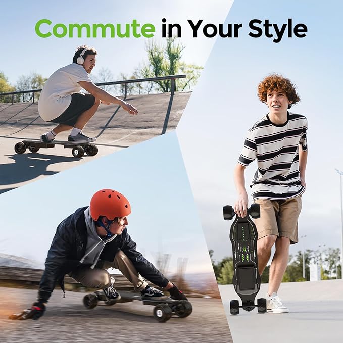 • Unique Gift – Our electric skateboard redefines the thrill of speed with both slow-start and sport modes. Unlike traditional skateboards, it offers instant acceleration for a boosted riding experience. Stand out from the crowd with ambient skateboard lighting that shines brightly in the dark. A perfect present for anyone seeking adventure and style!